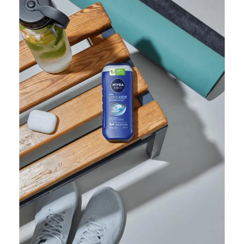 NIVEA MEN Cool Kick Shower Gel is een klassieke douchegel met verfrissende menthol, voor een frisse aftrap van je dag. NIVEA is al ruim 100 jaar expert op het gebied van gebied van huidverzorging en doucheverzorging. Daarom weten zij wel welke douchegel mannen nodig hebben. Verzorg je gezicht, huid en haar in één moeite. Stap onder je dagelijkse douche en ervaar de verkwikkende kick van menthol die deze NIVEA 3-in-1 douchegel teweegbrengt. Met een direct verkoelende menthol kick geeft deze formule je huid een opgefrist gevoel. Smeer je lekker in, spoel je af en je bent klaar om de dag in te gaan. Tip: vermijd contact met de ogen. Meer voordelen van deze NIVEA shower gel: de formule is pH huidneutraal, dus geschikt voor elk huidtype. Daarnaast betreft het een uitgebalanceerde mix van 97% biologisch afbreekbare bestanddelen, dus je bent ook nog duurzaam bezig.