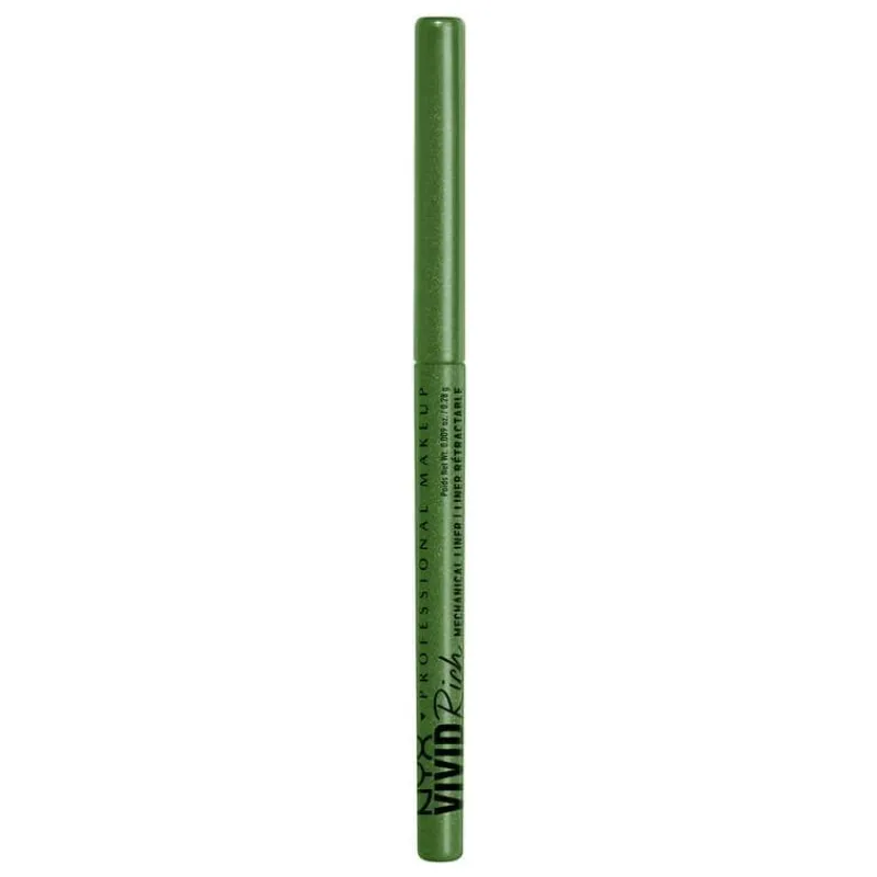 Nyx Professional Makeup Vivid Rich Mechanical Pencil biedt prachtige matte, glinsterende en metallic op edelstenen geinspireerde kleuren. De 12 tinten zijn rijk aan roomzachte, edelsteenkleurige pigmenten en zijn dankzij het twist-up potlood gemakkelijk aan te brengen in één beweging. Mix en match verschillende stralende tinten of kies voor een monochrome uitstraling. Van Spicy Pearl & Amber Stunner tot Aquamarine Dream: met deze levendige eyeliner creëer je de kleurrijkste looks. Toon je van je creatiefste kant en gebruik onze mooie levendige liners om indrukwekkende looks te creëren. Ideaal voor zowel beginners als echte pro’s en voor alle huidtypes! Mat, glanzend en metallic oogpotlood Stap 1. Breng Nyx Professional Makeup Vivid Rich Mechanical Pencil aan langs je bovenste wimperlijn om een gemakkelijke oogmake-uplook te creëren.Stap 2. Gebruik de fijne borstelpunt van de Vivid Matte vloeibare liner om in een handomdraai een perfecte wing of grafische lijnen aan te brengen.Stap 3. Creëer met de Epic Wear Liner stick kleurrijke looks voor een waterproof, smugde-proof en fade-proof resultaat.Stap 4. Teken moeiteloos vloeibare zwarte lijntjes of een vlijmscherpe wing met de Epic Ink Liquid liner. Nyx Professional Makeup Vivid Rich Mechanical Pencil biedt prachtige matte, glinsterende en metallic op edelstenen geinspireerde kleuren. De 12 tinten zijn rijk aan roomzachte, edelsteenkleurige pigmenten en zijn dankzij het twist-up potlood moeiteloos aan te brengen in één beweging. Mix en match verschillende stralende tinten of kies voor een monochrome uitstraling. Van Spicy Pearl & Amber Stunner tot Aquamarine Dream: met deze levendige eyeliner creëer je de kleurrijkste looks. Toon je van je creatiefste kant en gebruik onze mooie levendige liners om indrukwekkende looks te creëren. Ideaal voor zowel beginners als echte pro’s en voor alle huidtypes!Linerlooks worden gemakkelijk met NYX Vivid Rich. Kies je kleur en breng de kleurrijke eyeliner aan langs je bovenste wimperlijn om een gemakkelijke oogmake-uplook te creëren. Of experimenteer met vloeiende lijnen en wings.De NYX Vivid Rich Eyeliner is verkrijgbaar in de kleuren Always Onyx, Sapphire Bling, Truffle Diamond, Amber Stunner, Aquamarine Dream, Emerald Empire, Tigers Prize, Quartz Queen, Spicy Pearl, Smokin Topaz, Under the Moonstone en It’s Giving Jade. Creëer dus makkelijk elke look die je maar kunt bedenken!NYX Professional staat bekend om haar kwalitatieve, pigmentrijke make-upproducten en weerspiegelt de nieuwste make-up trends. In het portfolio van NYX vind je alles, van lippenstiften en oogschaduw tot eyeliners en concealers. Zowel populair bij het grote publiek, als bij professionele visagisten over de hele wereld!