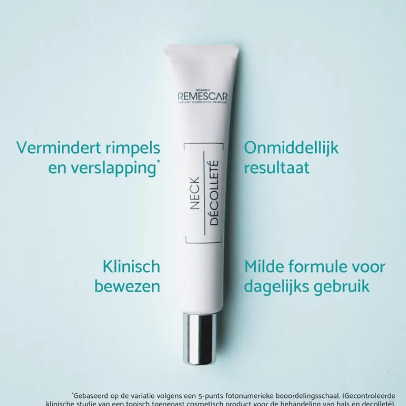 Remescar Hals & Decolleté is speciaal geformuleerd om onmiddelijk de hals decolleté te liften en strakker te maken in slechts 5 minuten. Klinisch bewezen effectief. en met 99% ingrediënten van natuurlijke oorsprong.