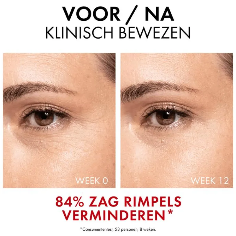 Naarmate je ouder wordt, begint de collageenproductie af te nemen. Dit versnelt tekenen van huidveroudering, vooral rondom de ogen. Het nieuwe Liftactiv Collagen 16 Serum, ontwikkeld door de experts van Vichy, helpt 16 tekenen van huidveroudering* bestrijden, dankzij de innovatieve en unieke Co-Bonding Technologie: wallen, donkere kringen, rimpels onder de ogen, onzuiverheden, fijne lijntjes, stevigheid, huidverslapping, soepelheid, huidtextuur, tekenen van vermoeidheid, toniciteit, veerkracht, glans, elasticiteit, hydratatie, gelijkmatigheid.