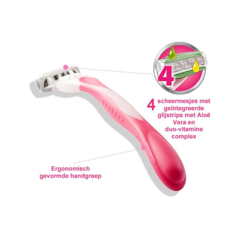 - Vier ultradunne mesjes met beweegbare scheerkop zorgen voor een langdurig fluweelzachte huid ook op de moeilijk te bereiken plekken.