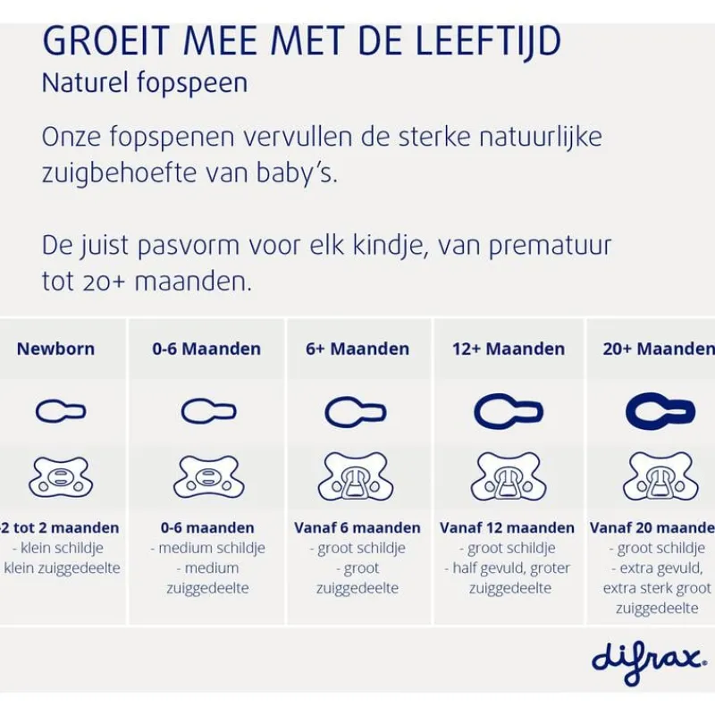 Difrax is hét Nederlandse babymerk met meer dan 50 jaar ervaring. In samenwerking met medische experts ontwikkelt Difrax veilige, praktische en stijlvolle producten voor elke fase in de ontwikkeling van je kindje.