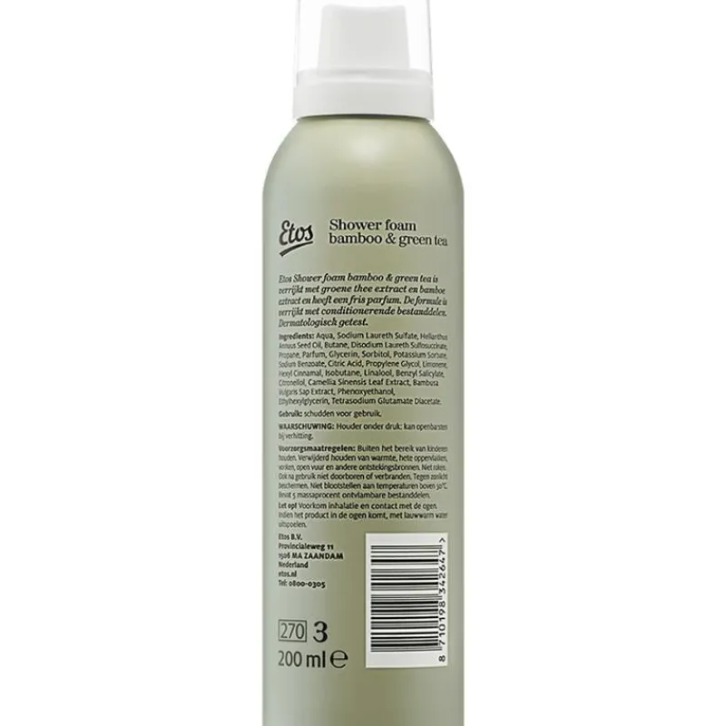 Etos Shower foam bamboo & green tea is verrijkt met groene thee extract en bamboe extract en heeft een fris parfum. De formule is