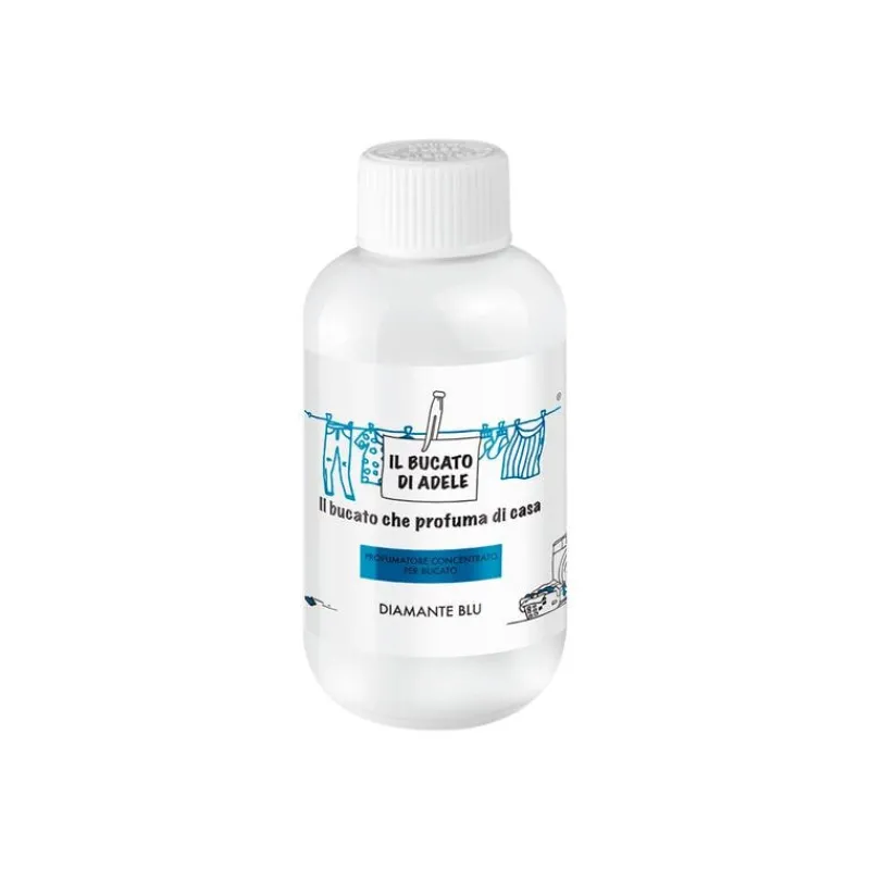 Il Bucato di Adele Wasparfum 150ml Blauwe Diamant. Een sterke en energieke geur, ideaal als je op zoek bent naar een intense en langdurige geur, die je kleding altijd fris en geurig maakt, alsof ze net gewassen zijn.Perfect voor degenen die nooit tevreden zijn en lef en karakter willen overbrengen, zelfs door het parfum dat ze dragen.