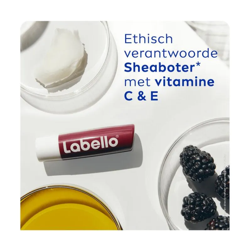 HEERLIJKE SMAAK + VERZORGING + EEN VLEUGJE KLEUR IN 1 PRODUCT? Onze VEGAN Labello Blackberry Shine biedt een heerlijk bramenaroma en een subtiele bordeauxrode glans voor je lippen. De formule, gemaakt van ingrediënten van NATUURLIJKE oorsprong, bevat ethisch geproduceerde sheaboter, oliën en vitamines die smelten op je lippen en ze meer dan 24 uur gehydrateerd houden. Deze fruitige lippenbalsem glijdt soepel over de lippen en biedt een prachtige, glanzende kleur die je lippen zacht en kusbaar maakt.