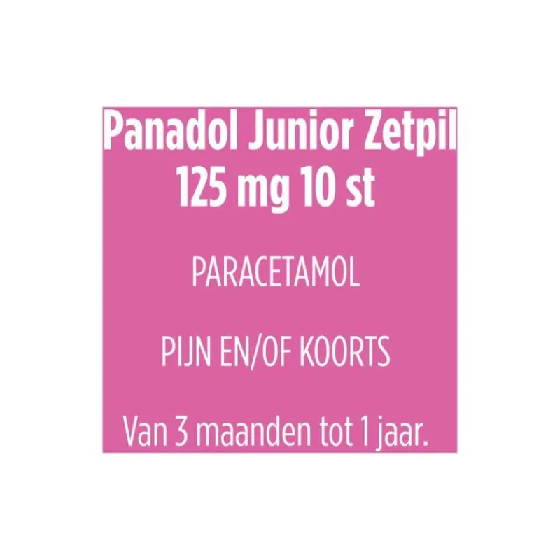 Panadol Junior Zetpillen 125 mg (Paracetamol) wordt gebruikt bij de behandeling van milde tot matige pijn en/of koorts bij kinderen van 3 maanden tot 1 jaar. Het actieve bestandsdeel is paracetamol.