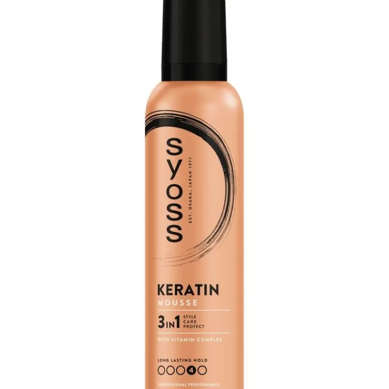 - lon- geïnspireerde Syoss Keratin Mousse, ontwikkeld met en getest door kappers, geeft tot 24u style-controle en een natuurlijke hold – voor versterkende en gezond glanzende salon looks thuis.