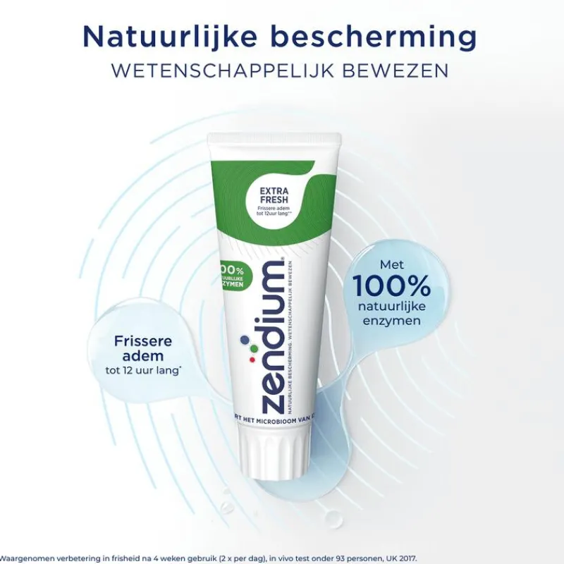 - Zendium Extra Fresh Tandpasta bevat 100% natuurlijke enzymen