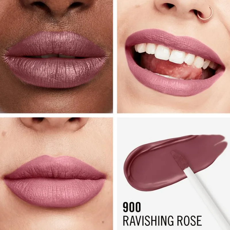 - De Rimmel London Mega Matte Vloeibare lipstick bestaat uit een diervriendelijke en vegan formule die met de lippen versmelt en een intens gekleurde matte finish biedt die de hele dag lang blijft zitten.