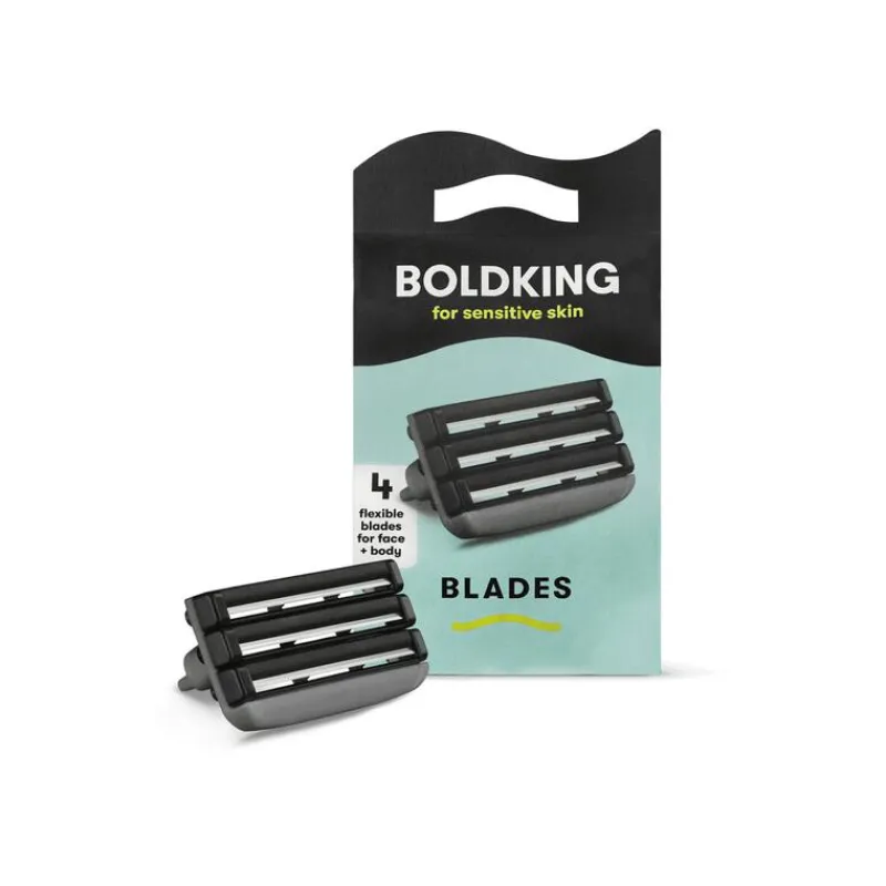 Mesjes voor de gevoelige huid. Boldking heeft als enige scheermerk mesjes voor ieder huidtype. In dit pakketje van vier mesjes zitten mesjes voor de gevoelige huid. Deze mesjes staan, ten opzichte van Boldking’s mesjes voor de normale huid, een fractie verder van de huid af. Dit zorgt voor een wat vriendelijkere scheerbeurt maar nog wel een glad resultaat. .