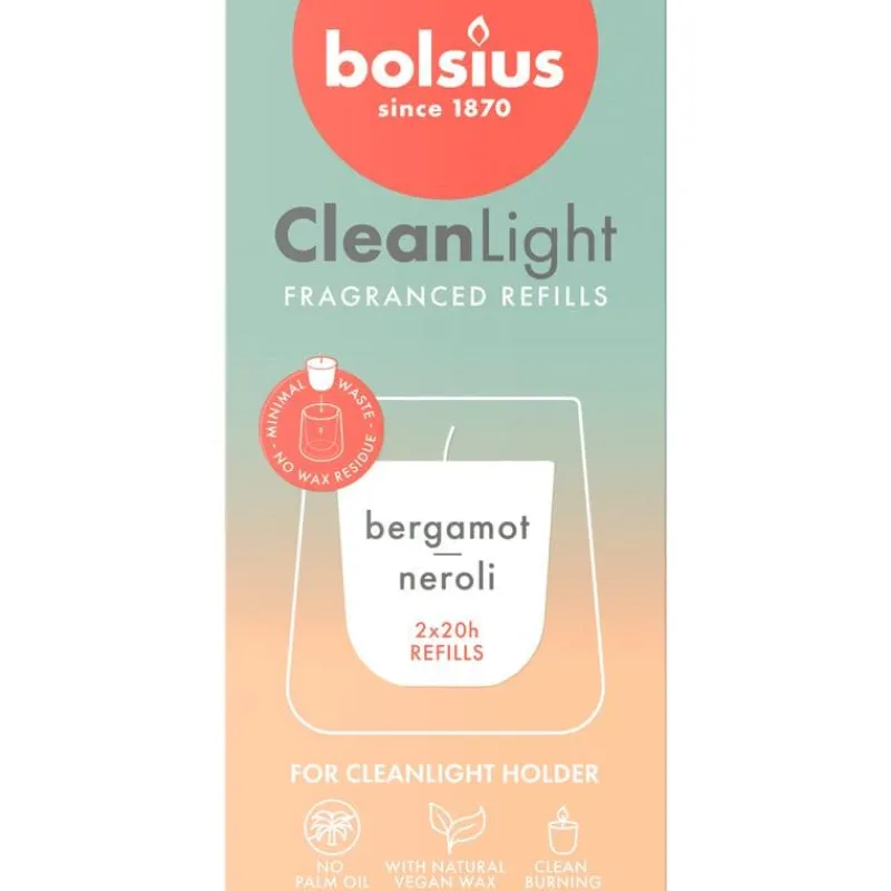 Geniet opnieuw en opnieuw van de navulbare geurkaars ‘Bergamot & Neroli’. Een sprankelende geur van frisse bergamot en sinaasappelbloesem. In de speciale CleanLight-houder brandt de geurkaars helemaal op, tot de laatste druppel wax. Verwijder het lontplaatje en vul de houder eenvoudig bij met één van de vijf magische geurcombinaties. Zo kun je oneindig genieten van heerlijke geuren in huis op een duurzamere manier. Gemaakt met natuurlijke vegan wax, natuurlijke extracten en zonder palmolie.