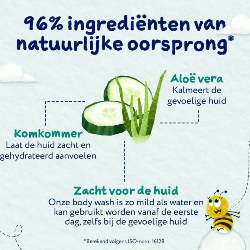 • Klinisch bewezen net zo mild en zacht als water en ondersteunt de huidbarrière