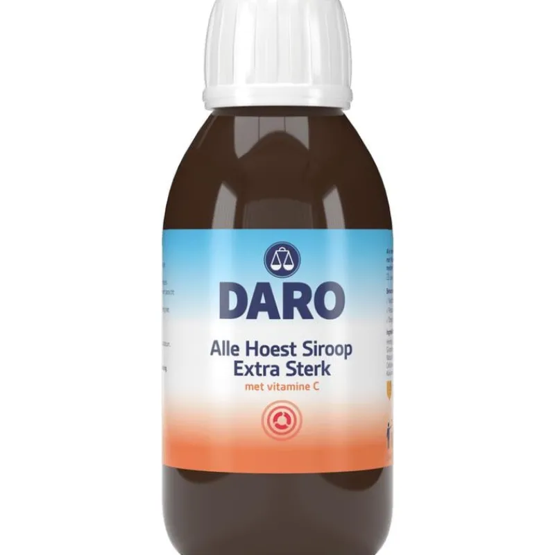Daro Alle Hoest Siroop Extra Sterk Met vitamine C bevat een dubbele hoeveelheid werkzame stof, werkt extra krachtig bij alle soorten hoest en keelpijn.