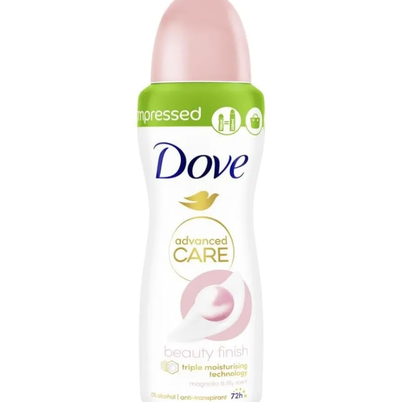 DOVE ADVANCED CARE BEAUTY FINISH MAGNOLIA & LILLY ANTI-TRANSPIRANT DEODORANT SPRAY MET BEAUTYMINERALEN BESCHERMT TEGEN ZWEET EN VERZORGT DE HUID.• Dove Advanced Care Beauty Finish Anti-Transpirant Deodorant Spray• Verzorgt en hydrateert de huid en biedt tot 72 uur bescherming tegen zweet• Met beautymineralen die het licht weerkaatsen en de huid doen stralen• De spray bevat een verbeterde formule met Triple Moisturising technologie• Anti-transpirant deodorant spray met de warme geur van magnolia en lelie• Dove anti-transpirant deodorants dragen het PETA-approved keurmerk