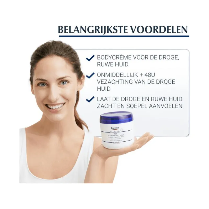 De UreaRepair PLUS Body Crème 5% Urea bevat Urea, Ceramide en andere Natural Moisturising Factors (NMFs). De bodycrème biedt klinisch bewezen directe verlichting en intense, langdurige hydratatie voor de droge en zeer droge huid. Geschikt voor mensen met Psoriasis, een verouderde huid of diabetici. Ook geschikt als aanvullende verzorging.