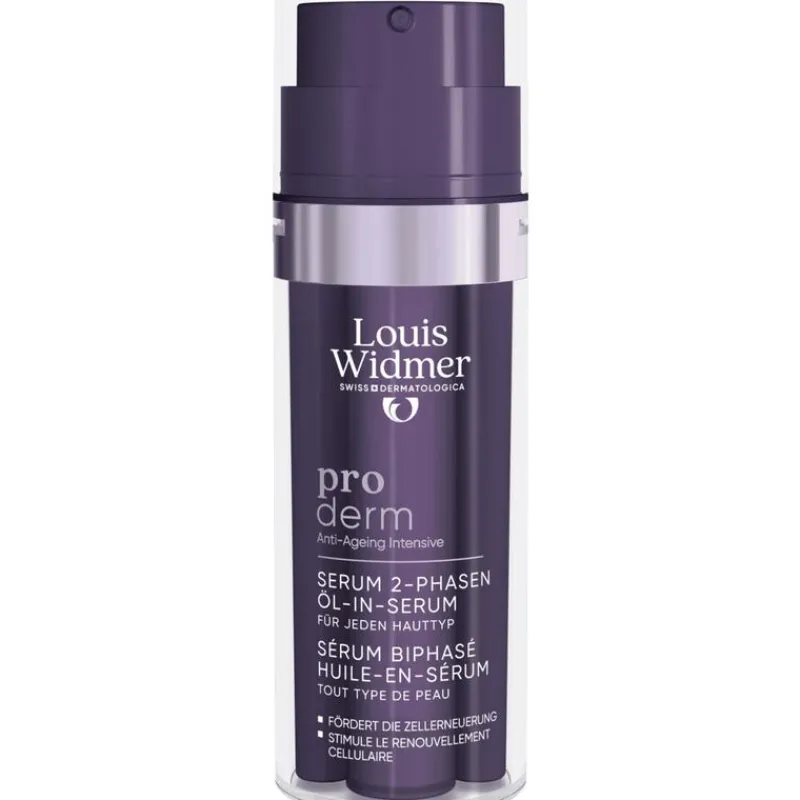 Louis Widmer proderm Tweefasig Serum Olie-in-Serum is een innovatief tweefasig serum met Reforcyl®-Aion.