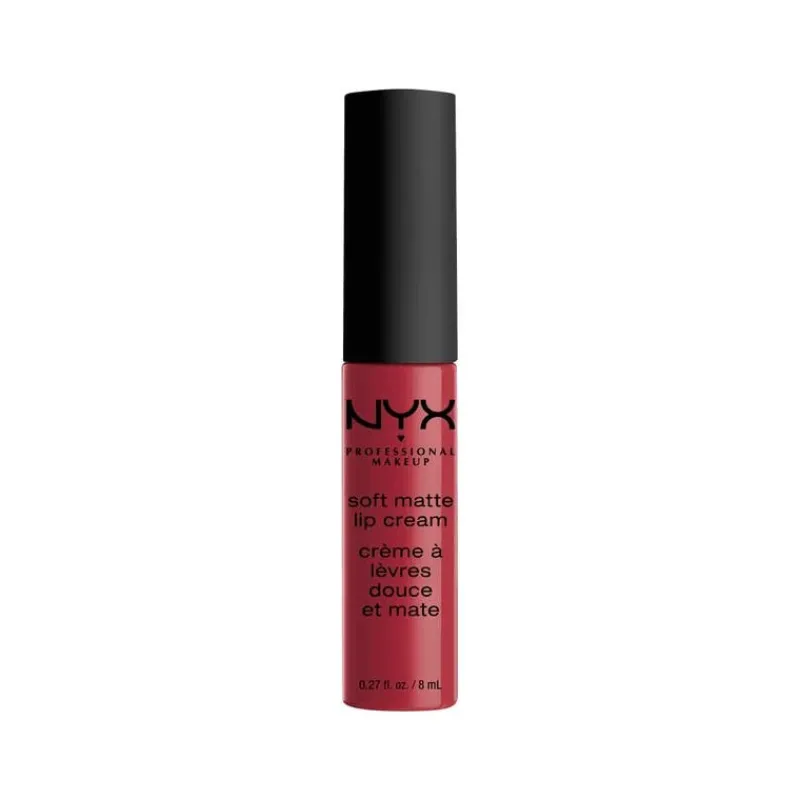 De Soft Matte Lip Cream Budapest SMLC25 van NYX Professional Makeup is een matte en hydraterende crème lipstick.Deze matte lipcream is een nieuwe soort lipkleur die zijdezacht aan te brengen is en een matte finish geeft. De Soft Matte Lip Cream blijft lang zitten en is, in tegenstelling tot sommige andere matte lipstick formules, ook nog eens hydraterend. Hierdoor geeft het lippen niet alleen een kleurtje, maar is ook verzorgend.Matte crème lipstick: verkrijgbaar in 38 kleurenDe NYX Professional Soft Matte Lip Cream Lipstick is verkrijgbaar in maar liefst 38 kleuren die vernoemd zijn naar grote steden in de wereld. Er is voor elke huidtint en gelegenheid wel een passende tint te vinden. Variërend van een lichte roze/beige tint, zoals de Abu Dhabi en London of een iets donkerdere lipcrème zoals kleur Stockholm en Cannes. Kleur ‘Rome’ is een prachtige bruin/rode tint en ons eigen ‘Amsterdam’ heeft een felrode kleur, perfect als statement lipcream.