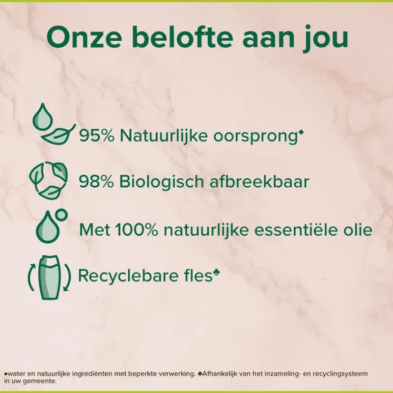 Geniet van een moment voor jezelf en spa-achtige verwennerij bij elke douchebeurt met Palmolive Thermal Mineral Massage douchegel. Deze bodywash met zeezout en aloë vera heeft een heerlijke geur en lekkere scrub-textuur om je te helpen je meer verbonden te voelen met de natuur. Deze douchegel is gemaakt met ingrediënten van 95% natuurlijke oorsprong* en heeft een formule die voor 93% biologisch afbreekbaar is. De douchegel bevat ook 100% natuurlijke essentiële olie voor een luxueuze douche-ervaring waardoor je je helemaal verwend voelt. De douchegel zit in een fles die voor 30% uit gerecycled plastic bestaat en volledig recyclebaar is.Voel je meer mens.Palmolive zet zich in voor verantwoorde inkoop. Meer hierover vind je op Palmolive.eu.com/naturalworld.*Water en natuurlijke ingrediënten met beperkte verwerking.