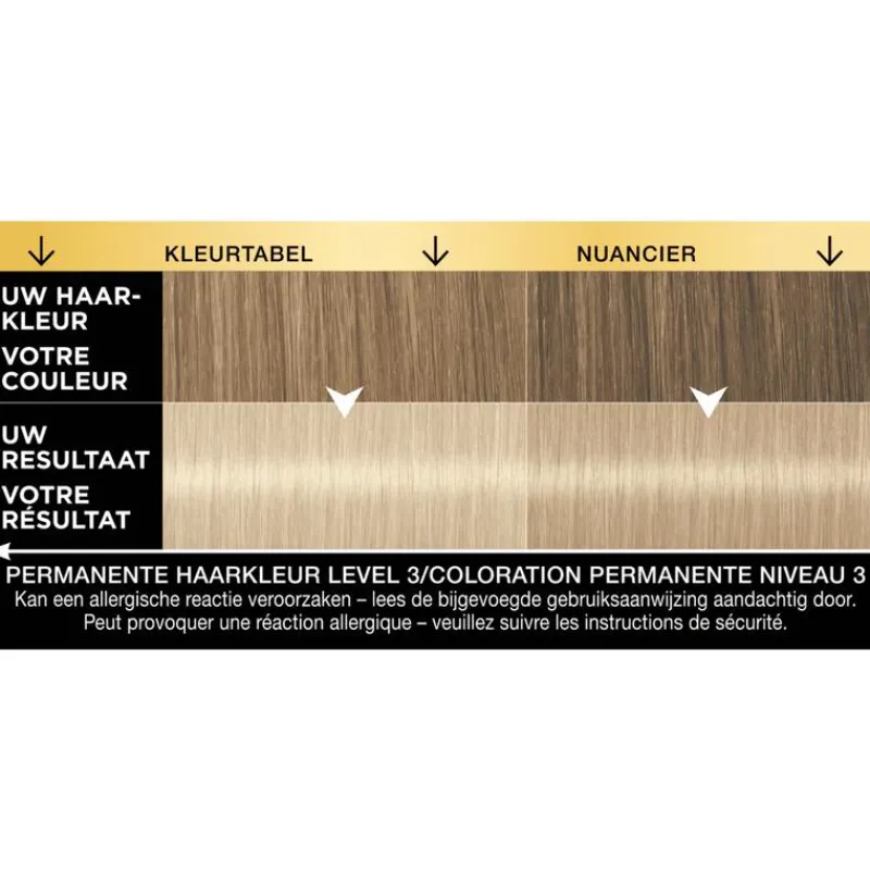 Hair Color/Toner, oxidative dyes:Aqua (Water, Eau)*Cetearyl Alcohol*Ethanolamine*Coconut Alcohol*Sodium Laureth-6 Carboxylate*Sodium Myreth Sulfate*Glycine*Bis-Diisopropanolamino-PG-Propyl Dimethicone/Bis-Isobutyl PEG-14 Copolymer*Acrylamidopropyltrimonium Chloride/Acrylates Copolymer*Coco-Glucoside*Paraffinum Liquidum (Mineral Oil, Huile Minérale)*Glyceryl Oleate*Ceteareth-12*Ceteareth-20*Parfum (Fragrance)*Potassium Hydroxide*Sodium Sulfite*Toluene-2,5-Diamine Sulfate*Sodium Silicate*Etidronic Acid*Ascorbic Acid*Sodium Chloride*Resorcinol*Butyloctanol*Citric Acid*Polysorbate 20*4-Chlororesorcinol*Phenoxyethanol*2-Methylresorcinol*Citronellol*Lactic Acid*Benzyl Alcohol*Alpha-Isomethyl Ionone*2,7-Naphthalenediol*m-Aminophenol*Sodium Benzoate*Methylparaben*Ethylparaben*2,4-Diaminophenoxyethanol HCl|Developer:Aqua (Water, Eau)*Paraffinum Liquidum (Mineral Oil, Huile Minérale)*Hydrogen Peroxide*Cetearyl Alcohol*PEG-40 Castor Oil*Sodium Cetearyl Sulfate*Etidronic Acid*Potassium Hydroxide*2,6-Dicarboxypyridine*Disodium Pyrophosphate*Sodium Benzoate*Sodium Sulfate|:Aqua (Water, Eau)*Cetearyl Alcohol*Quaternium-87*Propylene Glycol*Prunus Armeniaca (Apricot) Kernel Oil*Argania Spinosa Kernel Oil*Panthenol*Isopropyl Myristate*Distearoylethyl Hydroxyethylmonium Methosulfate*Citric Acid*Phenoxyethanol*Stearamidopropyl Dimethylamine*Polyquaternium-37*Ceteareth-20*Glyceryl Stearate*Sodium Methylparaben*Dicaprylyl Carbonate*Parfum (Fragrance)*Hexyl Cinnamal*Benzyl Salicylate*Linalool*Lauryl Glucoside*Benzyl Alcohol*Limonene
