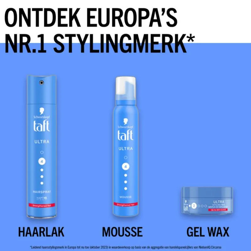 Bevalt de styling product lijn van Taft Ultra je goed? Probeer dan ook eens de Taft Ultra Haarmousse voor versteviging en bescherming van je haar, gellac spray, haarspray of gel.