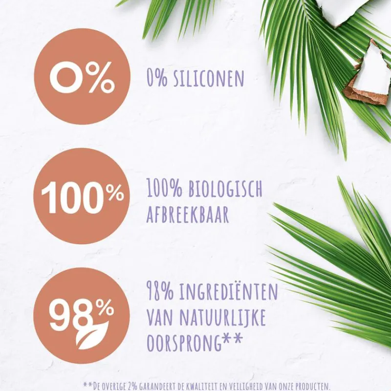 Verwen je krullen met de Coco Curl Creation lijn. In de Andrélon Pro Nature Coco Curl Creation Conditioner zijn siliconen vervangen door natuurlijke kokosolie. Kokosolie staat bekend om zijn voedende werking en is in staat om door te dringen tot in de haarvezel. Hierdoor wordt het haar van binnen gevoed. Het dringt diep door in je haar, zonder het te verzwaren. De Coco Curl conditioner voorkomt pluis, creëert mooie, veerkrachtige, natuurlijke krullen en geeft je haar een heerlijke kokosgeur. De conditioner bevat 0% sulfaten en is gemaakt met 98% ingrediënten van natuurlijke oorsprong*.