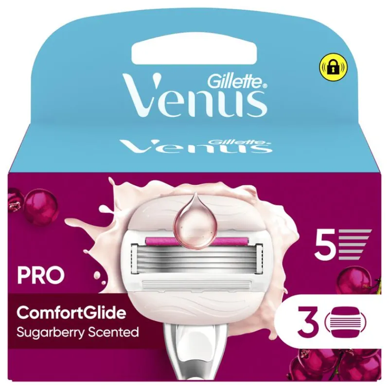 - Langer glad*: Een beetje vocht en Sugarberry-geur *in vergelijking met Venus met 3 scheermesjes