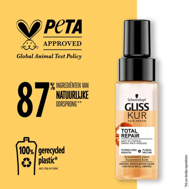 Schwarzkopf Gliss Anti-klitspray Total Repair 70ml – Gliss Anti-klitspray voor droog haar en beschadigd haar.