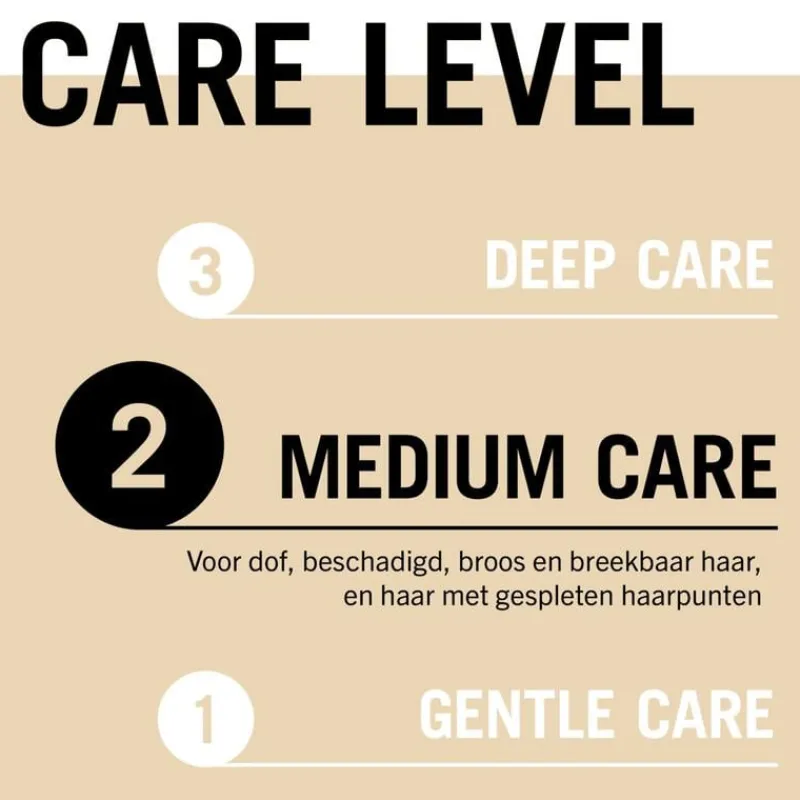- Gliss Care Level: 3 – Intense verzorging, met diep herstellende formules met hoogwaardige ingrediënten.