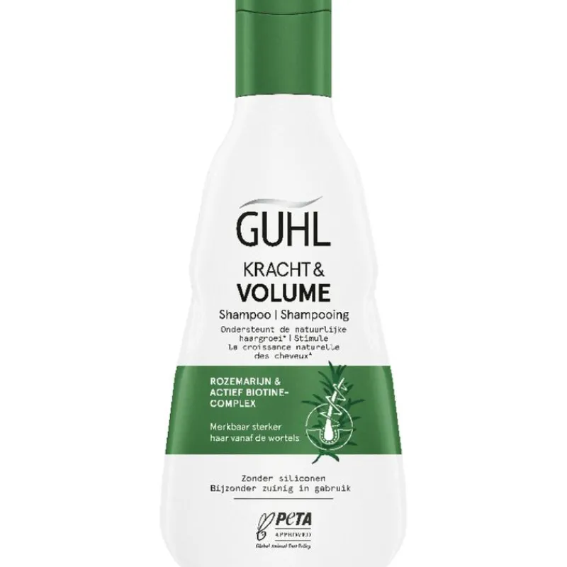 Guhl Kracht en Volume Shampoo versterkt dunner wordend haar en ondersteunt natuurlijke haargroei*. De shampoo, geformuleerd met vitaliserend rozemarijnextract en een actief biotine complex, reinigt het haar op milde wijze en geeft het haar weer nieuwe kracht. Voor merkbaar sterker haar vanaf de wortels!