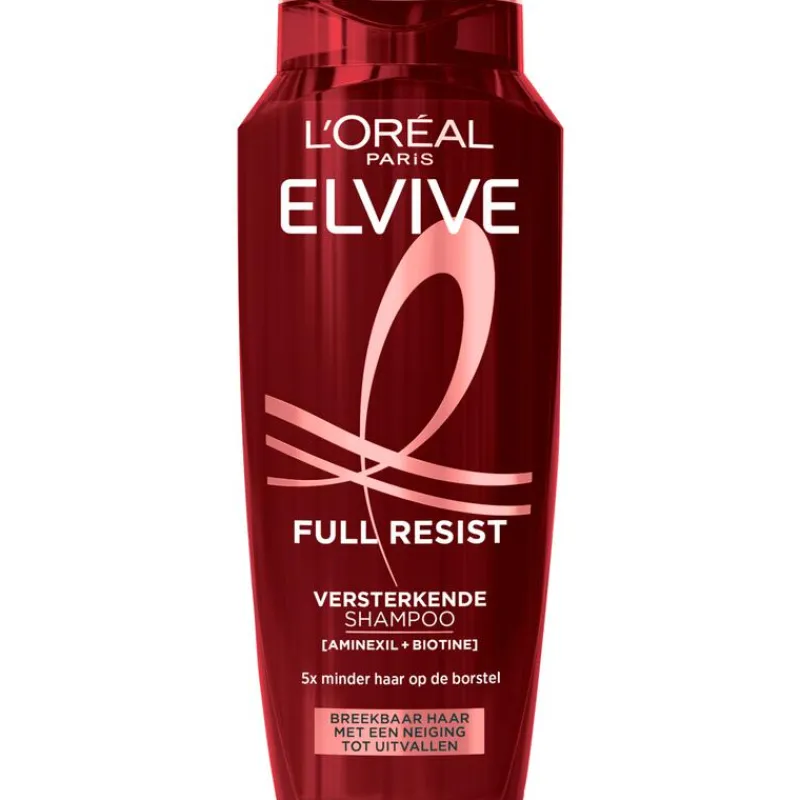 De L’Oréal Paris Elvive Full Resist Shampoo is ontwikkeld voor kwetsbaar, breekbaar haar, met een neiging tot uitvallen*. De versterkende formule bevat aminexil en biotine, vergroot de weerstand tegen haarbreuk, met 5X minder haar op de borstel**. Het werkt als een proteïne shake voor verzwakt haar. De L’Oréal L’Oréal Paris Elvive Full Resist Shampoo maakt het haar krachtiger, steviger en herstelt het haar van binnenuit. Jouw Elvive, nu nog beter! Onze vernieuwde fles is gemaakt met tot -20% minder plastic*** en is gemaakt van 100% gerecycled plastic****. Daarnaast is de fles ook recyclebaar. *Vanwege haarbreuk. **Instrumentele test shampoo + conditioner na 5 toepassingen. ***Ten opzichte van de vorige verpakking. Plastic vermindering varieert afhankelijk van het verpakkingsformaat. ****Met uitzondering van de additieven, kleurstoffen en labels.