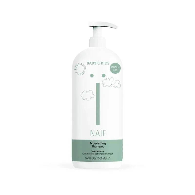 Een shampoo met natuurlijke ingrediënten voor baby en kind die mild reinigt, verzorgt én niet prikt in de ogen? Naïf Voedende Shampoo is er voor alle kleintjes. Zelfs voor baby’s zonder haar, want babyshampoo is ook goed bij het voorkomen van een droge hoofdhuid. Ook de meest gevoelige huid. Dit komt door de voedende werking vande afgeleiden uit kokosolie en katoenzaadolie. Nu in extra grote fles, met een handige pomp. Zo kom je nooit shampoo óf handen te kort. Fles leeg? Vul ‘m weer bij met de bijbehorende navulverpakking.