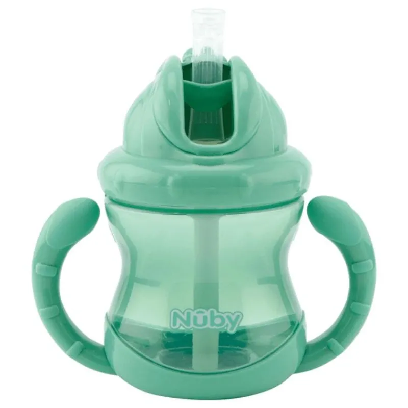 De flip dop houdt het rietje schoon wanneer de Nûby-beker niet in gebruik is. De handvatten aan deze beker maken de overgang van fles naar beker een stuk makkelijker.