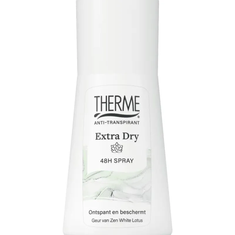 Therme Extra Dry 48H Spray geeft een luxe en ontspannen gevoel gedurende de dag. De Anti-Transpirant biedt een effectieve bescherming met de subtiele geur van Zen White Lotus. Maak je wellnessritueel compleet met de andere douche- en verzorgingsproducten van Therme Zen White Lotus.