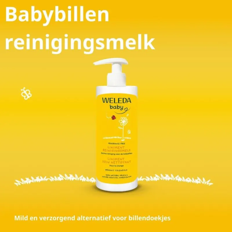 Tijdens de luierverschoning is het belangrijk dat de gevoelige babybilletjes grondig maar mild gereinigd worden, zonder de tere huid te irriteren. WELEDA Calendula Liniment is een natuurlijk mengsel van olijfolie en kalkwater, geïnspireerd op een traditioneel Frans recept om babybilletjes zacht en effectief te reinigen. Voor extra verzorging heeft WELEDA het recept verrijkt met biologische calendula, plantenoliën en zuivere bijenwas. Deze combinatie voedt, beschermt en kalmeert de gevoelige babyhuid intensief. Gebruik dit product bij voorkeur met een washandje, hydrofiele doek of tissue en warm water voor een zachte en effectieve reiniging.Calendula Liniment Reinigingsmelk is een 100% natuurlijk alternatief voor babydoekjes. De unieke 4-in-1 formule reinigt, voedt, beschermt en kalmeert de huid – ideaal voor de dagelijkse verzorging van babybilletjes met respect voor de natuur.