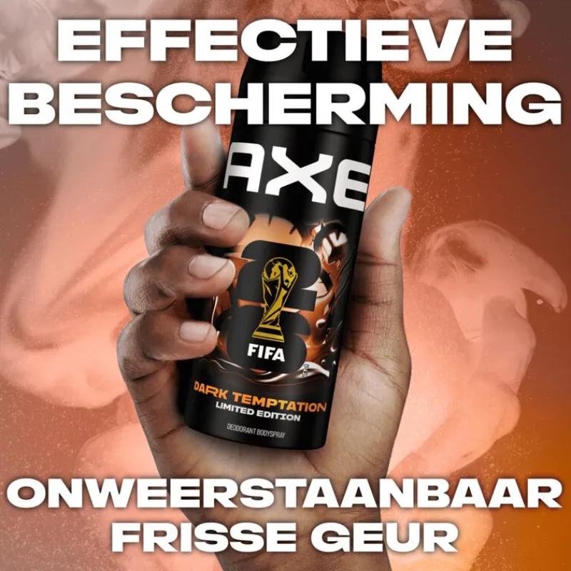Ruik onweerstaanbaar fris met AXE FIFA Limited Edition Dark Temptation Deodorant Bodyspray. Leef het dagelijkse frisse leven. Je weet nooit wat er kan gebeuren, dus heb je een bodyspray nodig om de hele dag heerlijk te blijven ruiken. AXE Dark Temptation Deodorant Bodyspray met geurbestrijdende zink, verhoogd met 5% Zink-Zap technologie, stopt ongewenste lichaamsgeur en geeft je langdurige bescherming. Geniet 48 uur lang van de geur van chocolade met een vleugje kruiden. Wat er ook op je pad komt, met AXE ben je er klaar voor. De hele dag door.
