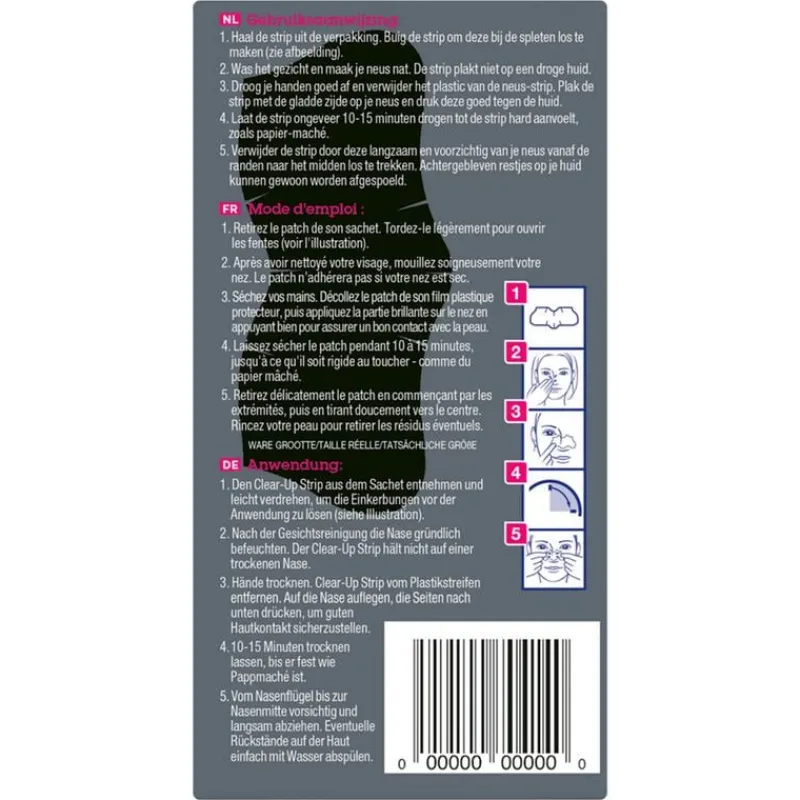 Stap 5: Verwijder de strip door deze langzaam en voorzichtig van je neus vanaf de randen naar het midden los te trekken. Achtergebleven restjes op je huid kunnen gewoon worden afgespoeld.
