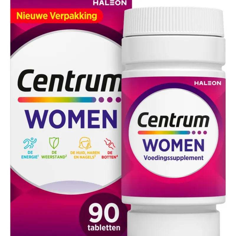 Centrum Women is speciaal ontwikkeld en gebalanceerd om de voedingsbehoeften van vrouwen en meisjes vanaf 12 jaar te ondersteunen. Vrouwen zijn anders dan mannen. Vrouwen zijn meestal kleiner, hebben meer vetweefsel en minder botmassa. Daarom hebben ze een andere mix van vitamines en mineralen nodig. Centrum Women bevat belangrijke micronutriënten om de energie, weerstand, huid, haren en botten te ondersteunen. Bevat vitamine B6, B12 en ijzer ter ondersteuning van het energieniveau en bevat vitamine C, seleen en zink om het immuunsysteem te ondersteunen. Bevat zink dat bijdraagt aan het behoud van een gezonde huid en gezond haar en bevat calcium, vitamine D en K die bijdragen aan het behoud van sterke botten. Gluten- en lactosevrij en geschikt voor diabetici.
