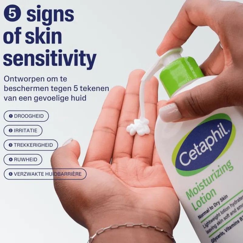 Cetaphil Hydraterende Lotion bevat een lichtgewicht en snel absorberende formule. Cetaphil Hydraterende Lotion is speciaal samengesteld met een door dermatologen ondersteunde mix van Vitamine B3, Provitamine B5 en hydraterende glycerine om de veerkracht van de gevoelige huid te verbeteren. Deze dagelijks te gebruiken lotion, verrijkt met avocado-olie, kalmeert de