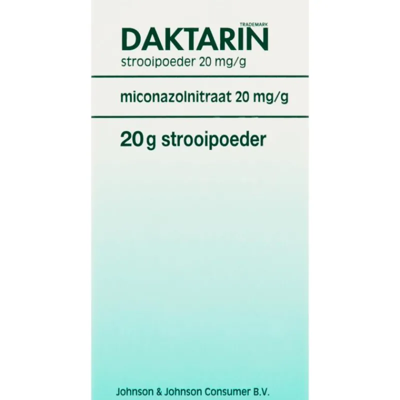 DAKTARIN® Poeder 2% is een geneesmiddel dat wordt gebruikt om huidinfecties te behandelen die voorkomen op handen, voeten en huidplooien (zoals bijvoorbeeld in de lies en onder de borst). Het poeder bevat miconazolnitraat dat vrijwel alle schimmels en bepaalde bacteriën doodt die de huid kunnen infecteren. DAKTARIN® Poeder 2% helpt de huid te drogen om zo het letsel doeltreffend te behandelen. DAKTARIN® Poeder is geschikt voor gebruik bij volwassenen en kinderen van alle leeftijden. De behandeling varieert van 2 tot 6 weken. De behandeling dient te worden voortgezet tot minimaal een week na het verdwijnen van alle tekens en symptomen.