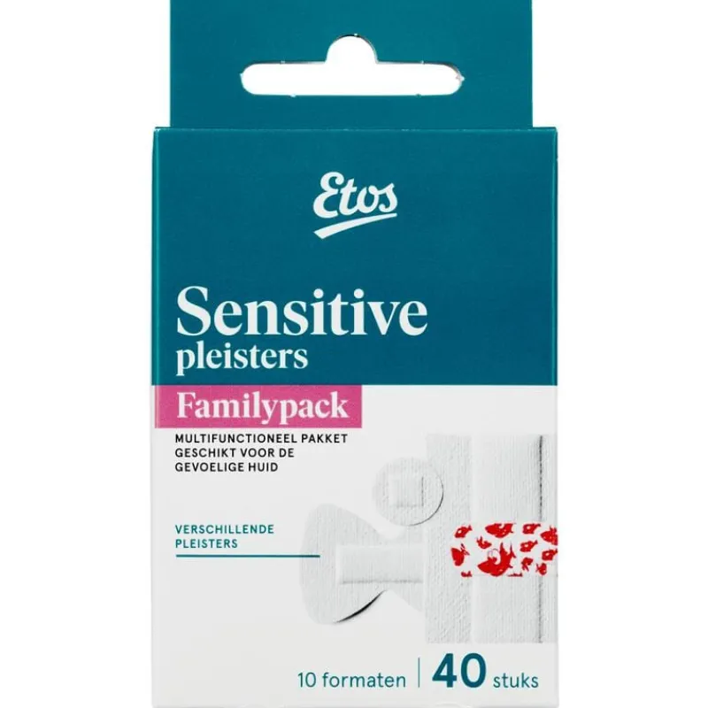 Etos Family Pack Sensitive Pleisters 40 st is een multi-functionele pleisterpakket met verschillende soorten pleisters voor het hele gezin. De Pleisters beschermen de wond tegen water en vuil. Deze pleister: