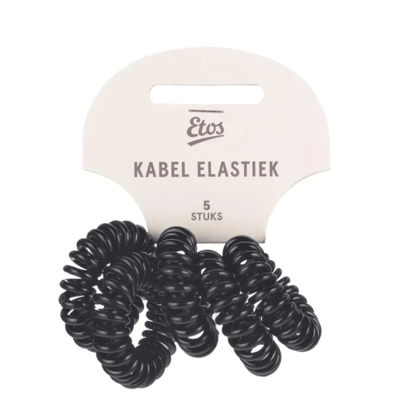 Op zoek naar haarelastiekjes die stevig zijn maar geen knik achterlaten in je haar? De Etos Kabelelastiek zijn de perfecte oplossing! Dankzij het speciale kabelontwerp zijn deze zwarte elastiekjes zacht voor je haar en voorkom je beschadiging. Ze bieden een sterke grip zonder dat je haar platgedrukt wordt. Ideaal voor het maken van strakke staarten, knotjes of vlechten en geschikt voor alle haartypes.