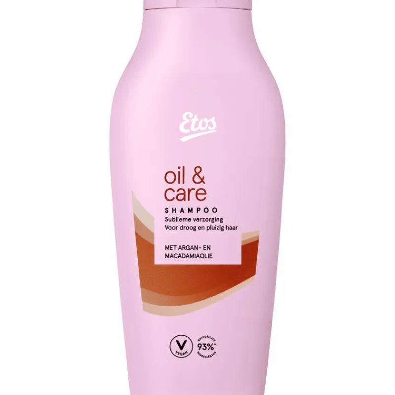 Etos Oil & Care shampoo verzorgt droog en pluizig haar en houdt het haar in conditie. De voedende formule met argan- en macadamiaolie helpt je haar te beschermen tegen uitdroging zonder dat het je haar vet maakt.