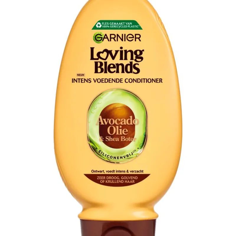 Garnier Loving Blends Avocado Olie & Shea Boter Conditioner ontwart, voedt en verzacht krullen zonder te verzwaren. De iconische formule van Garnier Loving Blends Avocado Olie & Shea Boter Conditioner is speciaal ontwikkeld voor zeer droog, golvend of krullend haar en is nu verrijkt met 10x meer geconcentreerd Avocado Olie*. Het haar is intens gevoed tot wel 4 weken**, zachter, gemakkelijker te stijlen en geschikt voor alle verschillende type krullen (2ABC, 3ABC & 4ABC). De Garnier Loving Blends Avocado Olie & Shea Boter Conditioner bevat Shea Boter van verantwoorde oorsprong en 97% van de ingrediënten van natuurlijke oorsprong. Garnier zet zich in voor Green Beauty. Ontdek voor nog meer verzorging de gehele routine. Garnier zet zich voortdurend in om de ecologische en sociale impact van haar producten te verminderen tijdens hun gehele levenscyclus, dus inclusief gedurende de productie- en gebruiksfase. Daarnaast streven wij ernaar om jou op een transparante manier toegang te geven tot deze gegevens, zodat jij beter geïnformeerde beslissingen kunt maken over welke producten je aanschaft. Daarom heeft Garnier het Product Impact Labelling Systeem geïntroduceerd. Om zo transparant mogelijk te zijn is deze methode ontwikkeld met de hulp van onafhankelijke wetenschappelijke experts en de gegevens zijn gecontroleerd door het onafhankelijke Bureau Veritas. *Vs vorige formule. **Gebasseerd op een pot van 340 ml en 3 gebruiken per week. Kan verschillen op basis van gebruik en lengte van het haar.