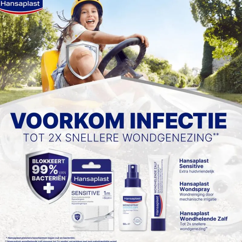 *Hansaplast pleisters blokkeert 99% van de bacteriën.