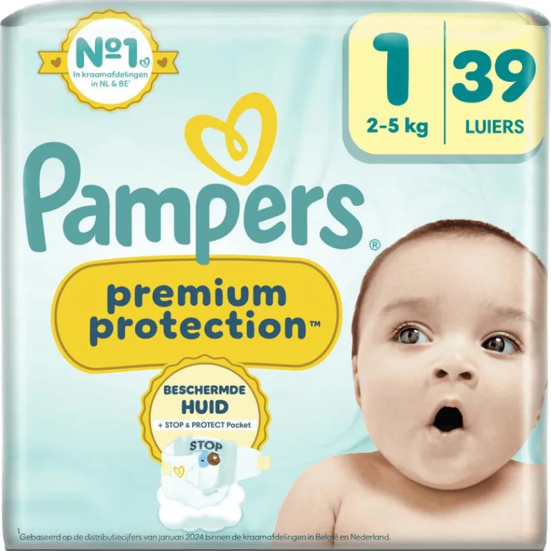 Dubbele bescherming: voor de huid en tegen lekken. Pampers beste comfort en bescherming van de gevoelige huid – getest en goedgekeurd door baby’s. De N°1 luier van Pampers is speciaal gemaakt voor de gevoelige huid van pasgeboren baby’s. En het is ook onze N°1 in bescherming tegen lekken. Pampers Premium Protection luiers bieden de beste bescherming van Pampers, dankzij