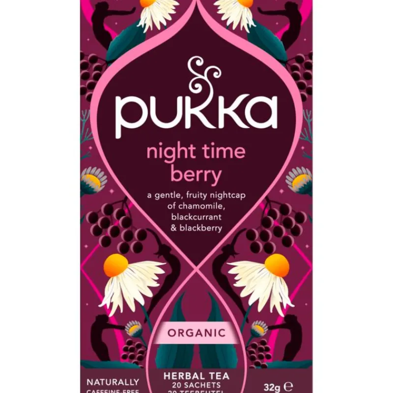 Rustgevend en omhullend, Pukka Night Time Berry thee is een kalmerende blend ter ondersteuning voor een rustgevende nacht.