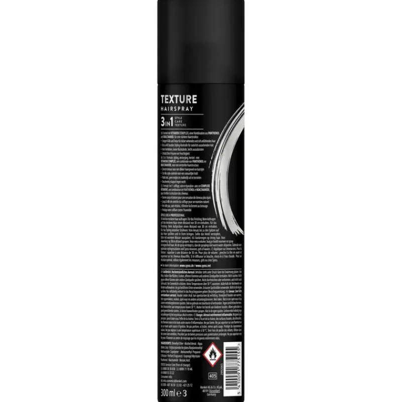 - lon- geïnspireerde Syoss Texture Haarspray, ontwikkeld met en getest door kappers, geeft directe textuur aan het haar en een dikker haargevoel, voor volle salon looks thuis.