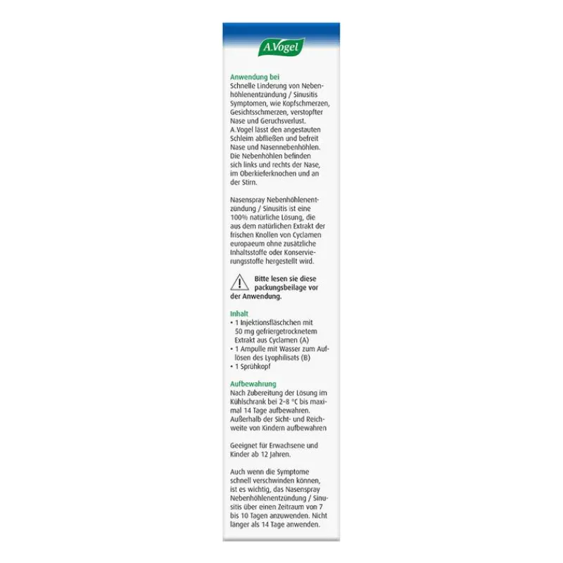 Snelle verlichting van symptomen van bijholteontsteking / sinusitis, zoals hoofdpijn, pijn in het gezicht, verstopte neus en verlies van reuk. A.Vogel neusspray bijholteontsteking / sinusitis voert neusslijm af en reinigt de neus en bijholtes / sinussen. De bijholtes zitten links en rechts van de neus in het bot van de bovenkaak en in het voorhoofd.
