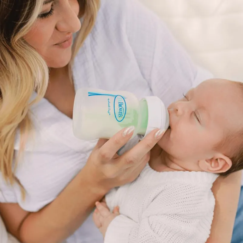 Dankzij de bredere speen is de kans op tepel-speenverwarring kleiner. Het gepatenteerde ventielsysteem zorgt ervoor dat er minder lucht in het buikje van je baby terechtkomt en helpt om vitamines in de voeding beter te behouden.