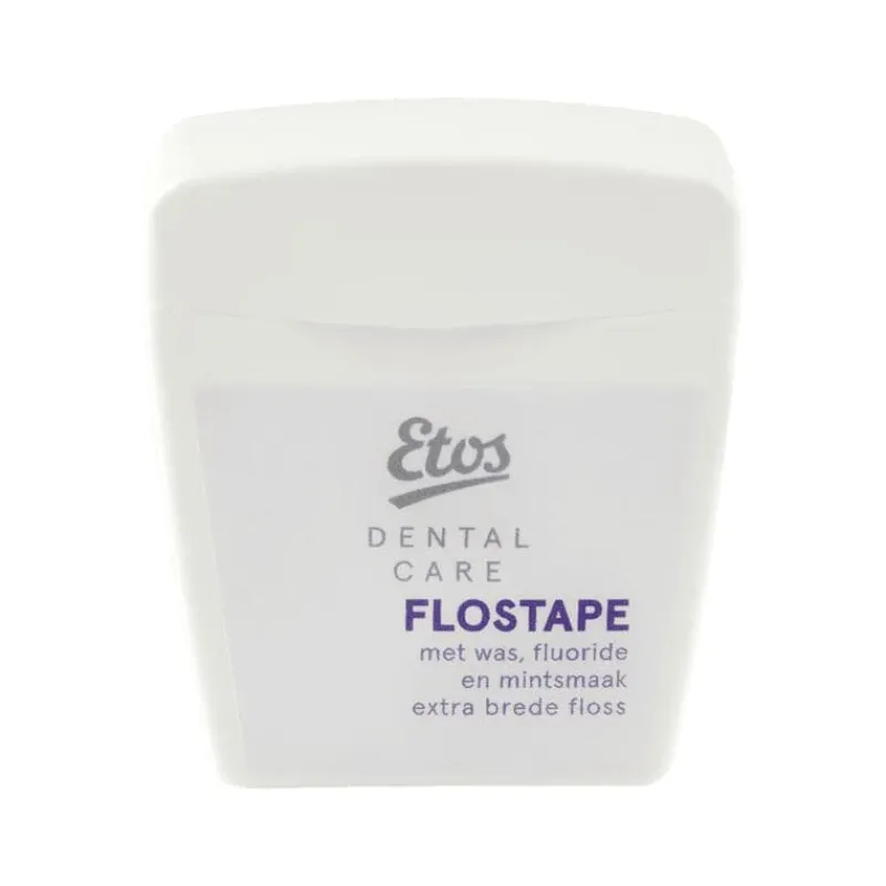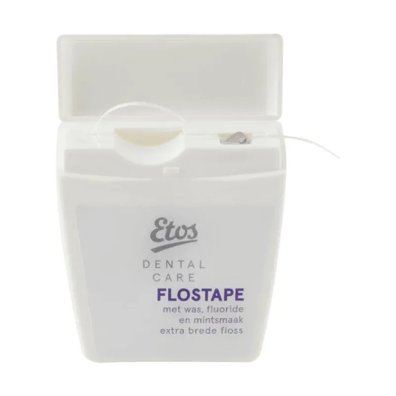 Etos flostape verwijdert plak en etensresten tussen de tanden en op plaatsen waar de tandenborstel niet goed bij komt.